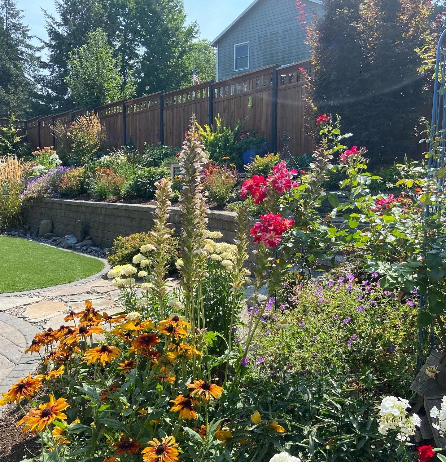 “What a great time I had working with Chris these past several months on the edit of my large yard! Chris is extremely personable and professional and is an expert on every aspect of plants and landscape design. She provided scaled drawings of the areas to be edited along with names and pictures of the plants proposed for each area. She was flexible and listened to my wishes and priorities at every step. Chris ordered the plants and recommended an excellent installation team. She was generous with her time in meetings and site visits and timely in responding to texts and emails. She came in right on time and on budget with no surprises! I was delighted with the result and with the fact that Chris made the project so easy for me all the way through! I will use her again soon and would recommend her without reservation to anyone wanting a superb landscape designer.” - Y. Morse, Corvallis